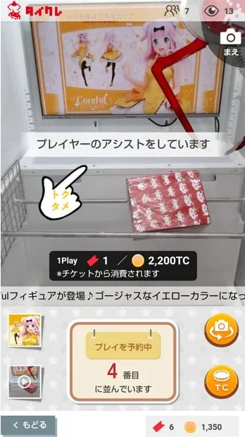 ※ただし、アシストしてくれるプレイ回数やTC使用額は決まっていません。新着プライズや人気景品はアシストまで時間がかかることもあります。
