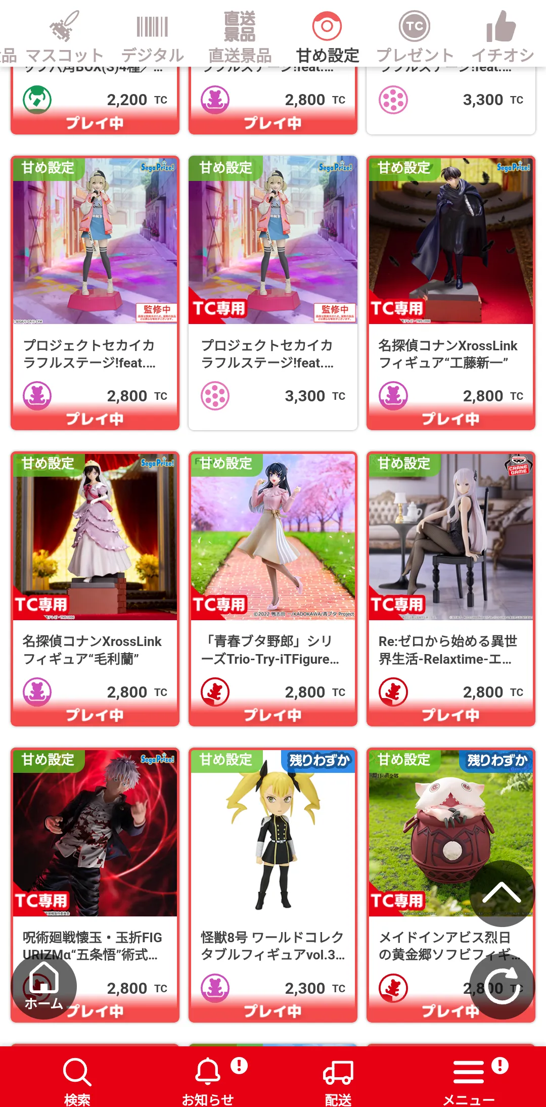 タイクレでは、獲りやすく設定された”甘め設定”というコーナーがあります。